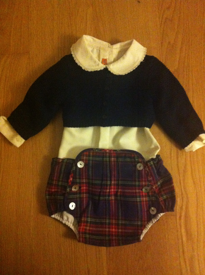 Nada de grandes ansiedades! Esperei pelas 12 semanas para comprar as primeiras peças... Comecei por comprar uns interiores brancos e beiges, muito pequeninos! Lindos! Depois comprei coisas neutras como camisas brancas com golinhas, tapa fraldas xadrez, que davam para menino e menina!