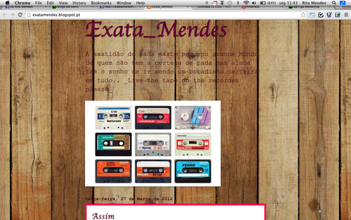 Escrever faz parte de mim. Mas não é de agora, este blog só tornou essa necessidade diária e mais oficial... ou antes, talvez só a tenha tornado público e de acesso aberto a mais gente, porque, pensando bem, tempos houve, em que a maior disponibilidade e a ânsia artistica própria dos meus ainda sonhadores e sequiosos 20 e poucos anos me "obrigavam" a despejar letras e textos e pensamentos todos os santos dias. Foram cadernos e cadernos (antes da época dos computadores) e depois... pastas e pastas de word ;) Ah sim, e antes da maternidade e antes, claro da febre dos bloques, já eu os tinha descoberto e já há uns bons anos tratava a blogosfera por tu ( blogs como o Exatamendes ou o As lágrimas são o supremo sorriso exorcizaram muitas das minhas versões apaixonada, desencantada, intensa, à descoberta da vida...).