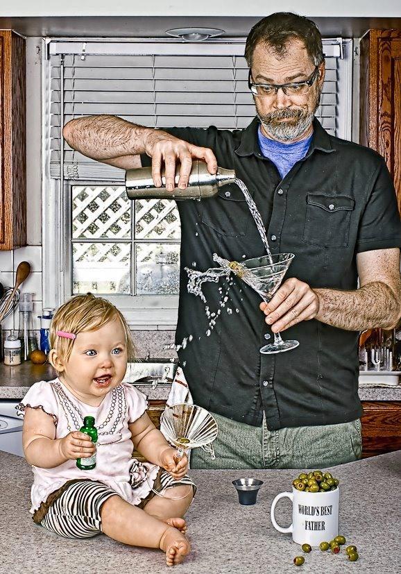 Segundo o próprio Dave Engledow ( o autor das mesmas e pai da menina ), estas nestas fotos ele representa o pai que ele não queria definitivamente ser ... ( Distraído, egocêntrico, negligente, maldoso até...mas... que a filha adora!! )