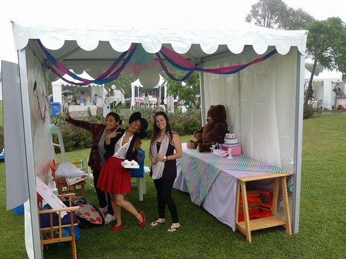 Começámos todas, o dia, em pânico... porque.. chovia a potes (e a montagem do espaço foi feita nesse ambiente e de pézinho molhado...), mas afinal, a partir do meio dia, a tempestade passou a bonança e o Parque dos Poetas, em Oeiras começou a ficar povoado de famílias giras e desejosas de ver as lojinhas, conhecer os projetos e ver os espetáculos preparados para elas.