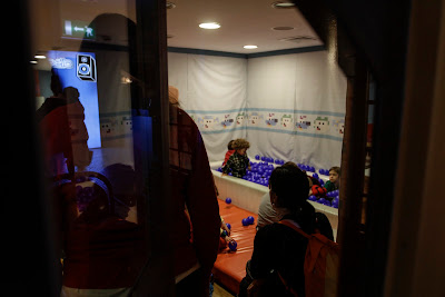 Até à mana Matita, que dormia profundamente, foi colocada uma pulseira no pé. Depois dela e todos os outros estarem "referênciados" pelo sistema, foi programado o número de pessoas associadas ao nosso grupo, as idades e sexos das pessoas (crescidos e pequenos) e assim... nunca nos perdemos. ( Existem, no recinto, várias máquinas com um sistema que permite que saibamos onde estão todas as pessoas do nosso grupo, através da visão, num mapa da sua localização... Brutal, acreditem!)