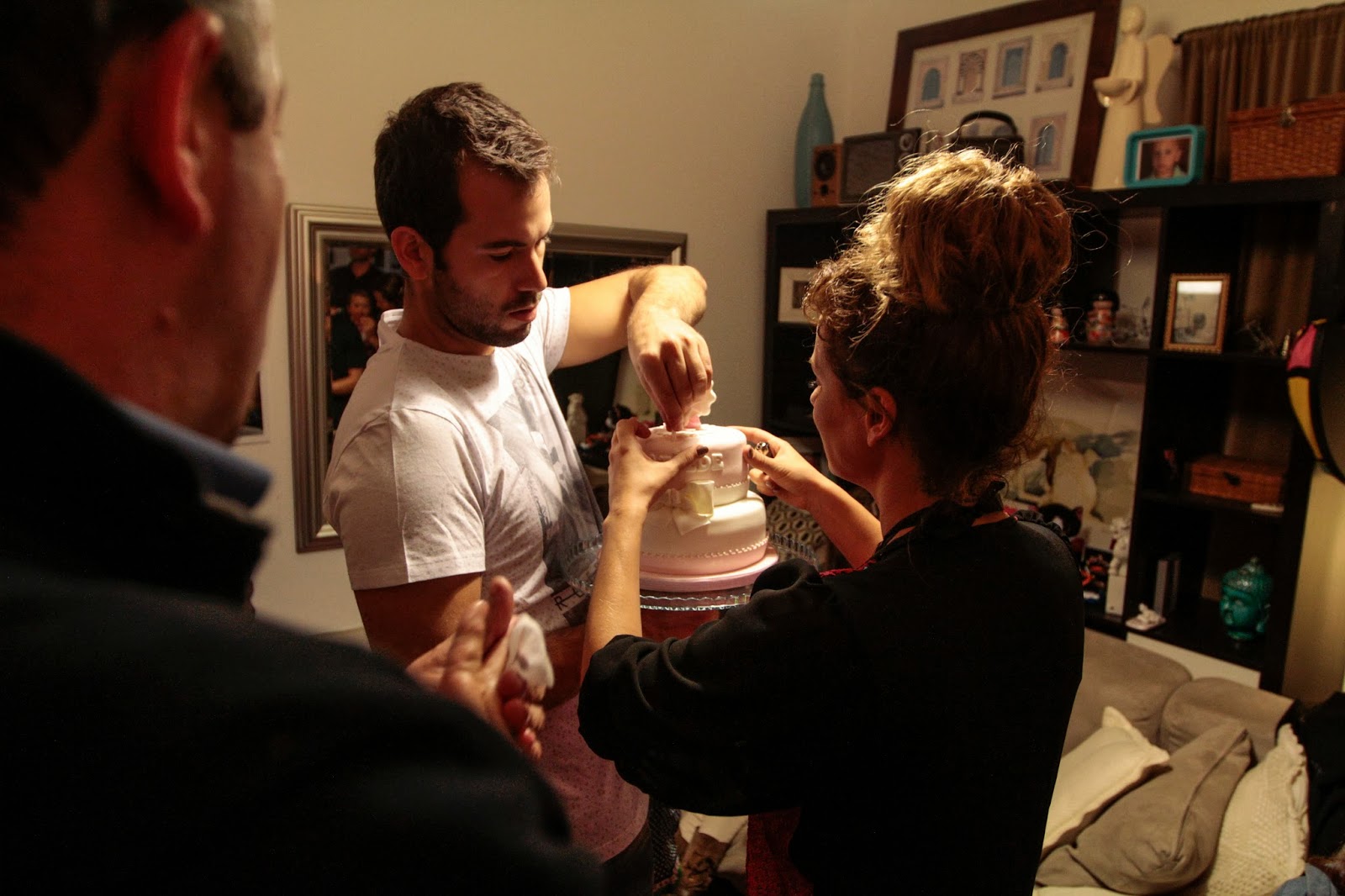 Por isso mesmo, e porque decidimos não sobrecarregar de "informação" e enfeites a decoração o bolo foi de uma simplicidade extrema (e eu acho que bom gosto). Às vezes... Less is More... e aqui foi sem dúvida a máxima. Sim, porque a festa foi em casa e não num espaço "nú" e por isso tivémos que nos adaptar à decoração existente.