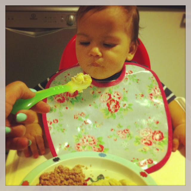 3- A primeira refeição sólida que a Matilde Estrela experimentou. Já fez 10 meses e estava já na hora de o fazer... Apesar de ela ser comilona, eu estava ansiosa com o resultado deste dia, podia não correr muito bem, alteração de hábitos, de sabores... enfim...