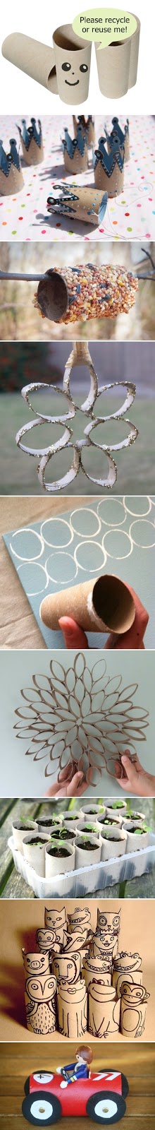 E como cá por casa... ( gozem, gozem...) se gasta muito papel higiénico decidi pesquisar o que fazer com os rolos. E achei soluções simples e giríssimas.